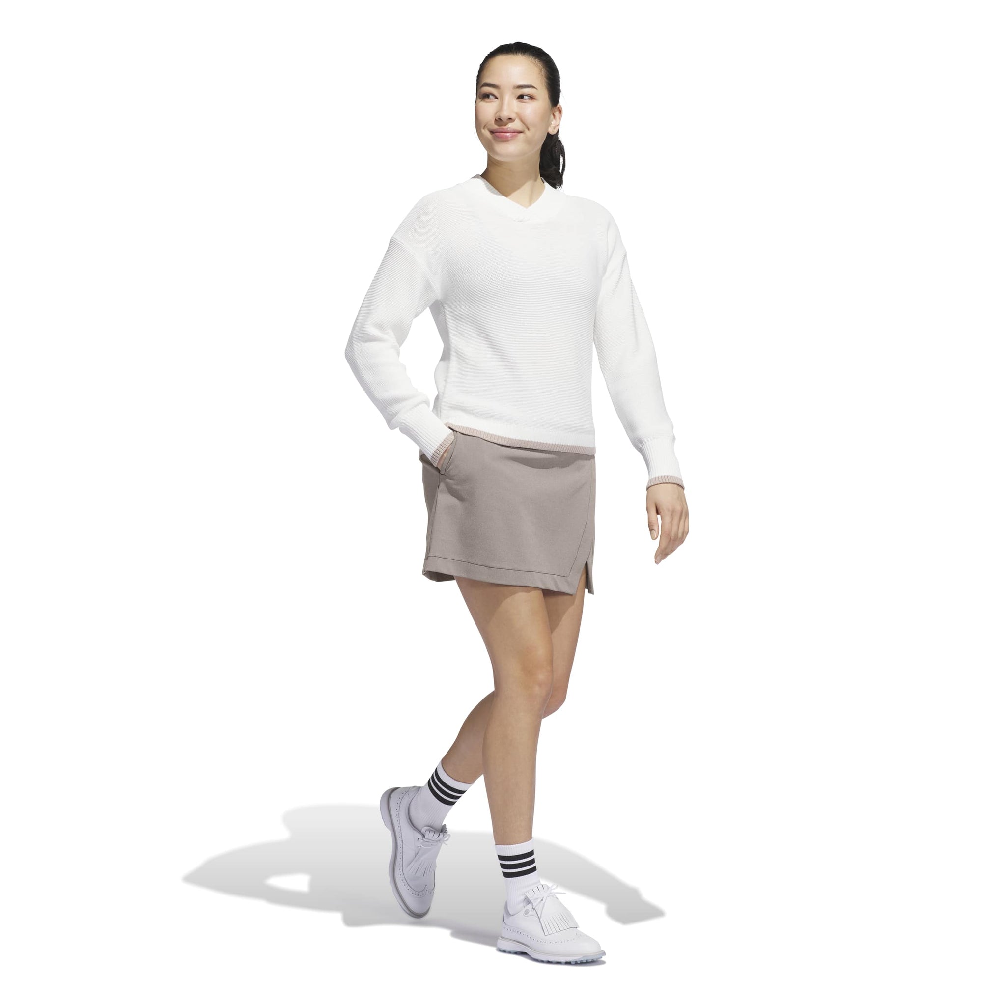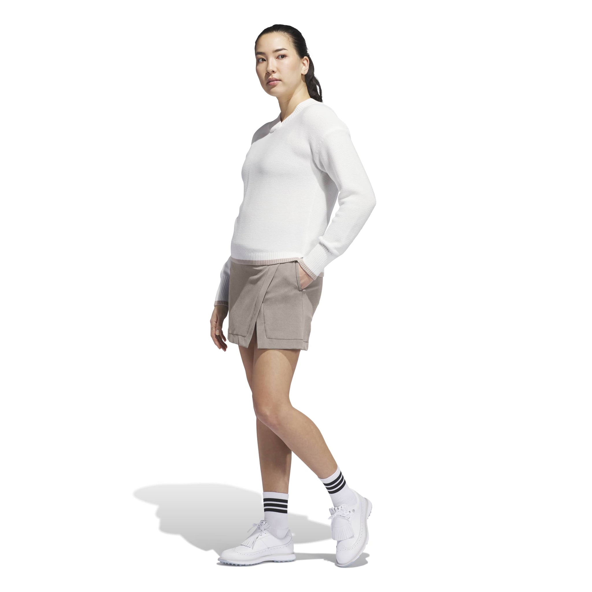 Wherever you play, this adidas golf skort pairs versatile style and all-around performance to keep you focused on shaving strokes. The attached undershorts let you move and twist confidently, and the faux wrap design offers classic on-course style.