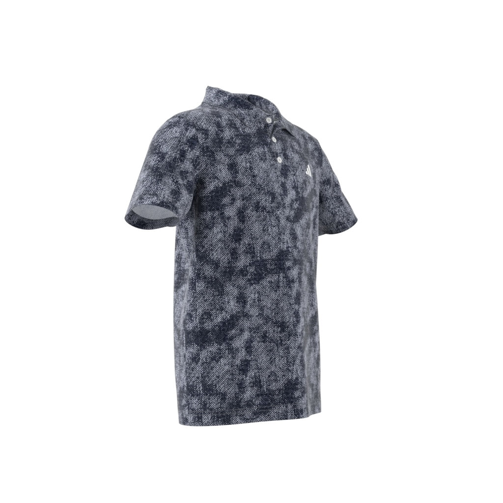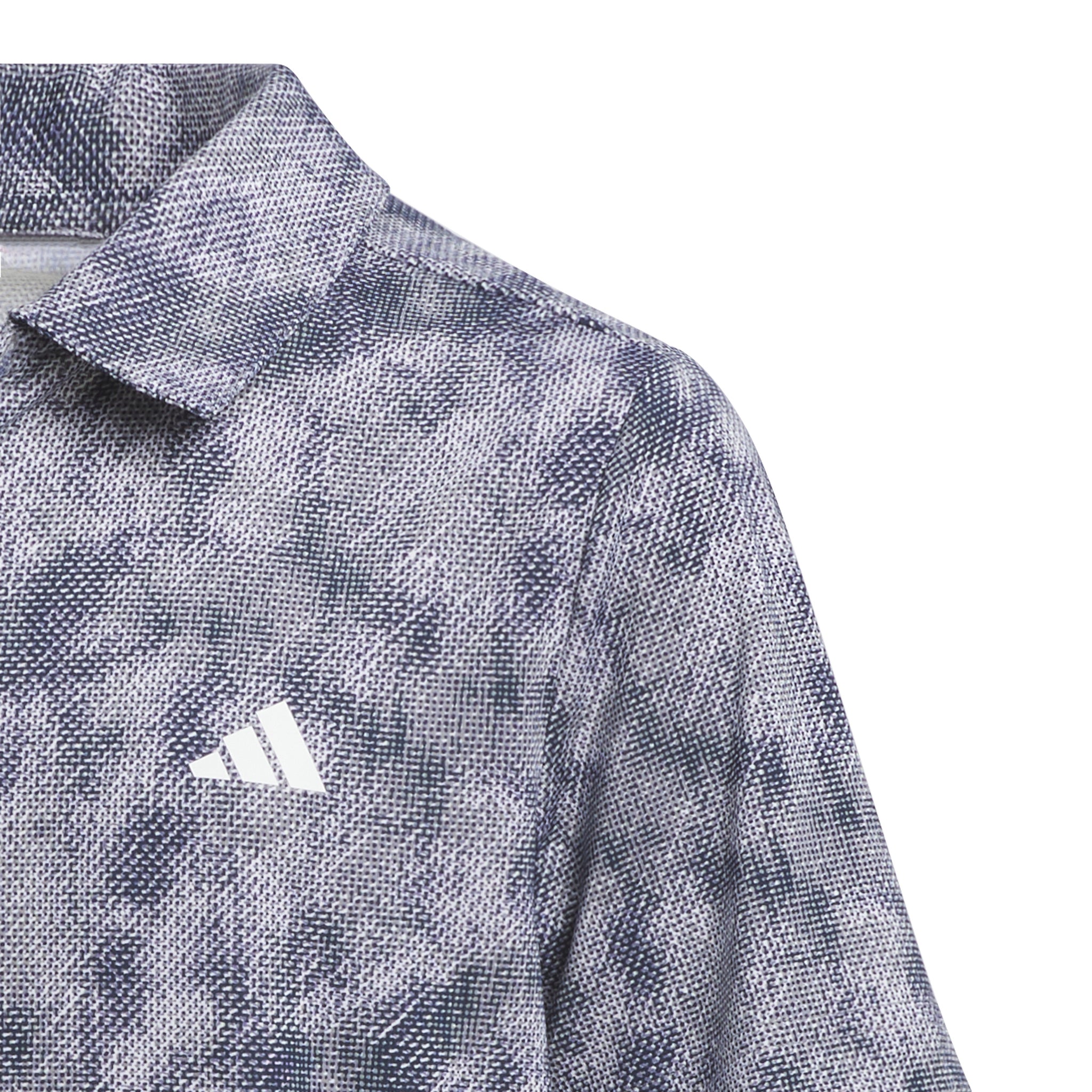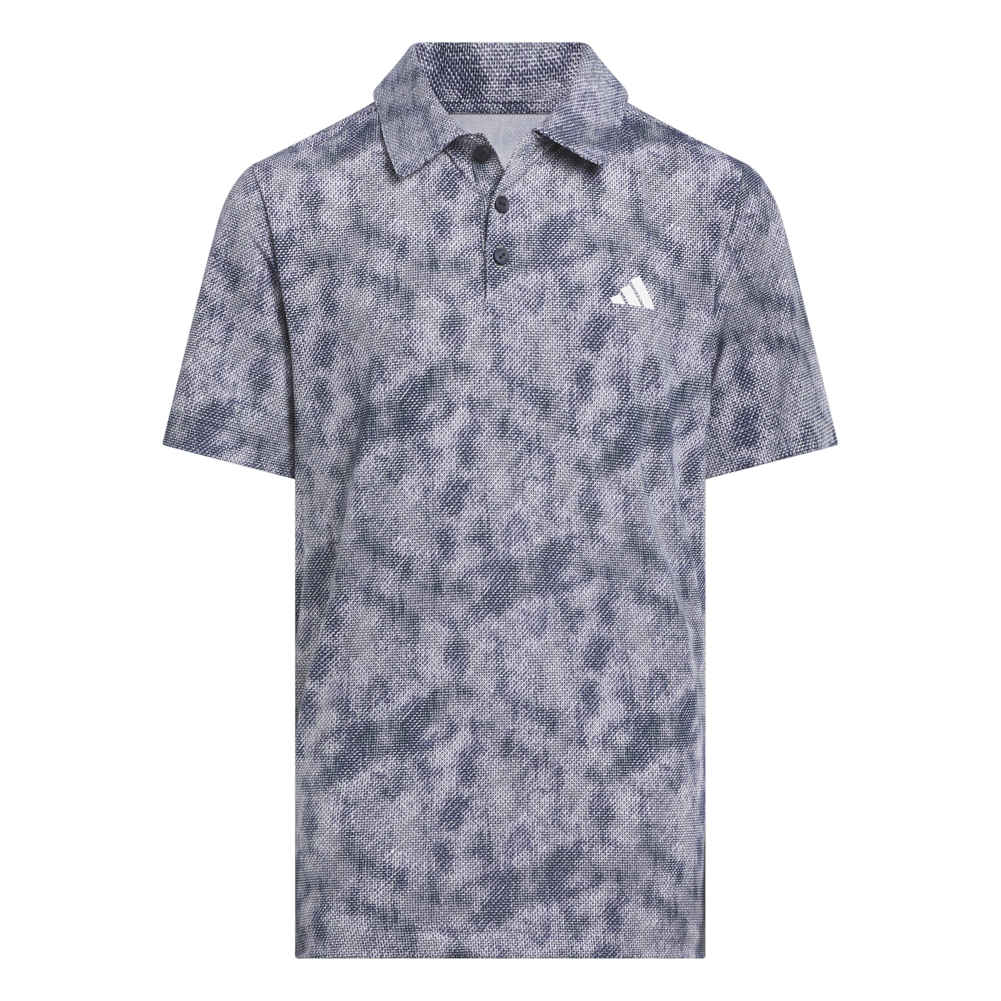 Set your young golfer up for success. This adidas golf polo shirt keeps them comfortable and playing their best with a soft, textured knit and integrated stretch for full mobility. A subtle background print adds a modern touch to this classic polo.