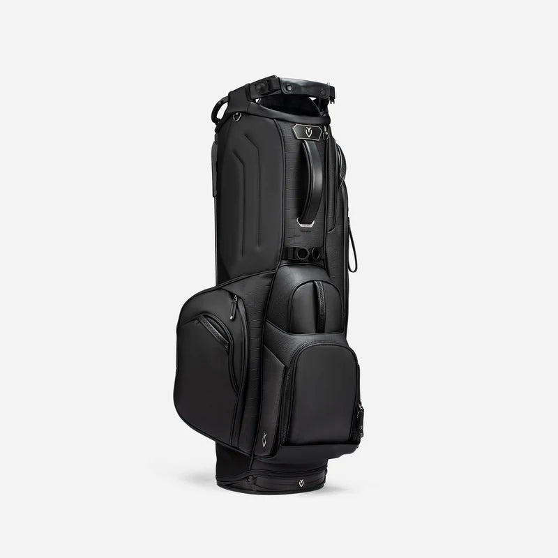 Experience the pinnacle of luxury performance with the Player V Pro. Meticulously crafted for the highest level of functionality and on-course convenience. The newly designed 7-and-14 way tops offer best in class club organization with dedicated putter storage and offset club dividers for optimal club viewing and retrieval. The Player V Pro utilizes VESSEL’s patented technologies (Equilibrium Double Strap and Rotator Base) for maximum balance and superior stability. Intentionally placed high strap-attachment points promote further balance and eliminate club fallout while the bag is being carried. A key feature is the cart strap pass-through for added protection when used on a cart or trolley. With too many fine details to name, you’ll be pleasantly surprised to discover that every detail, every element, of the Player V Pro is thoughtfully crafted for an uncompromised game.