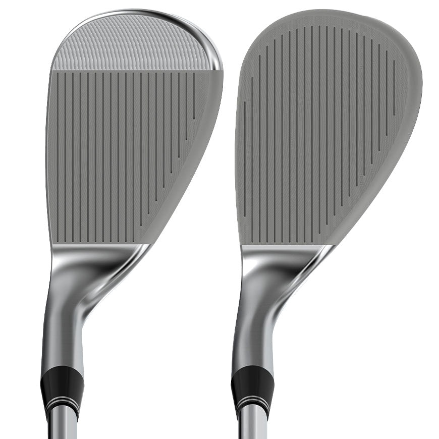 High-Toe shaping with 12° of bounce and Full-Face grooves for more versatility on open-face shots or shots around the green. A more aggressive C-Shaped grind with high-toe shaping and a slightly lower 10° of bounce. Full-Face grooves help with maximum versatility on open-face shots and shots around the green.